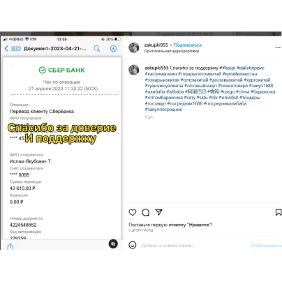 Доставщик кажется надежным, компания крупная, чаще для оптового закупа. Отвечают быстро, аудио (китайцы говорят на русском), показывают офис в видео. Несколько аккаунтов в инстаграме, тк занимается не один человек, выкладывают чеки-отзывы людей. Есть офис в Москве, можно платить и забирать оттуда.